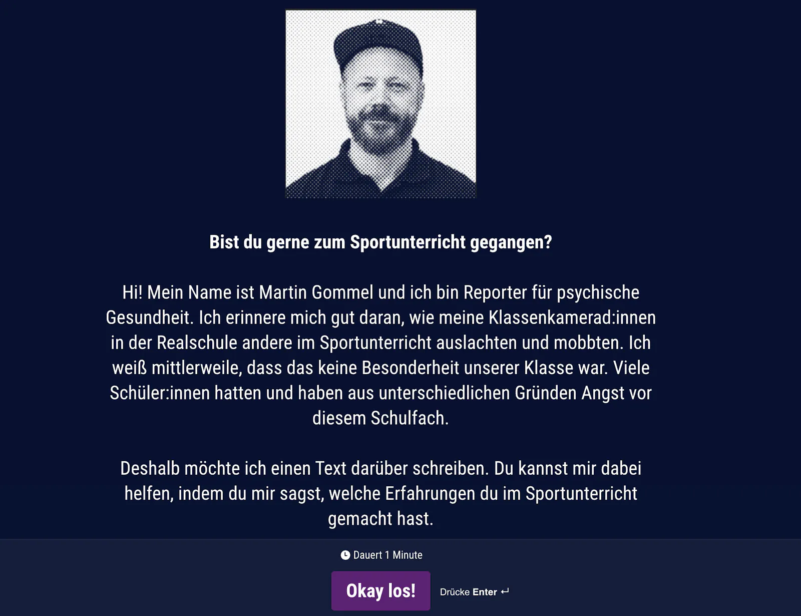 Die Leitfrage sollte weder zu groß, noch zu klein sein – in beiden Fällen macht kaum jemand bei der Umfrage mit. Ein Beispiel für eine zu große Leitfrage: Welche Frage hast du zu Wissenschaft? (Zu Beginn der Pandemie diskutierten alle über die Rolle der Wissenschaft, wir dachten, das sei eine gute Frage). Bei dieser Umfrage machten genau 18 Menschen mit. Ein Beispiel für eine zu kleine Leitfrage: Welche Frage hast du zum Recycling in der E-Mobilität? Teilnehmer:innen: 15. Die Zielgruppe war viel zu spitz. Genau in der Mitte war diese Umfrage: Welche Frage hast du zu Waldorfschulen? Über 600 Teilnehmer:innen.