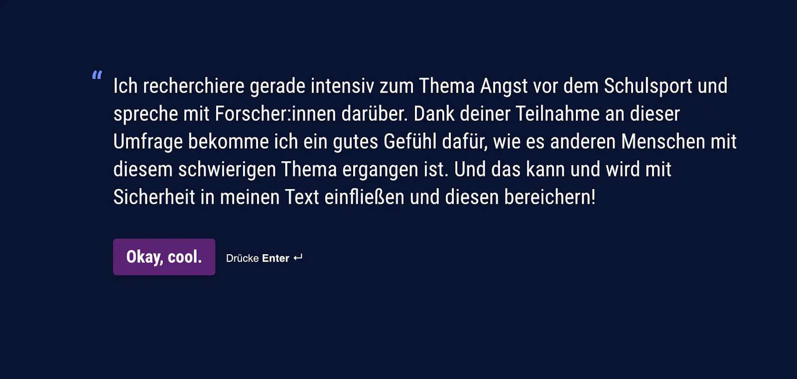 Sag den Leuten, warum du die Umfrage machst und wie es weitergeht. Wir machen das meistens innerhalb der Umfrage.