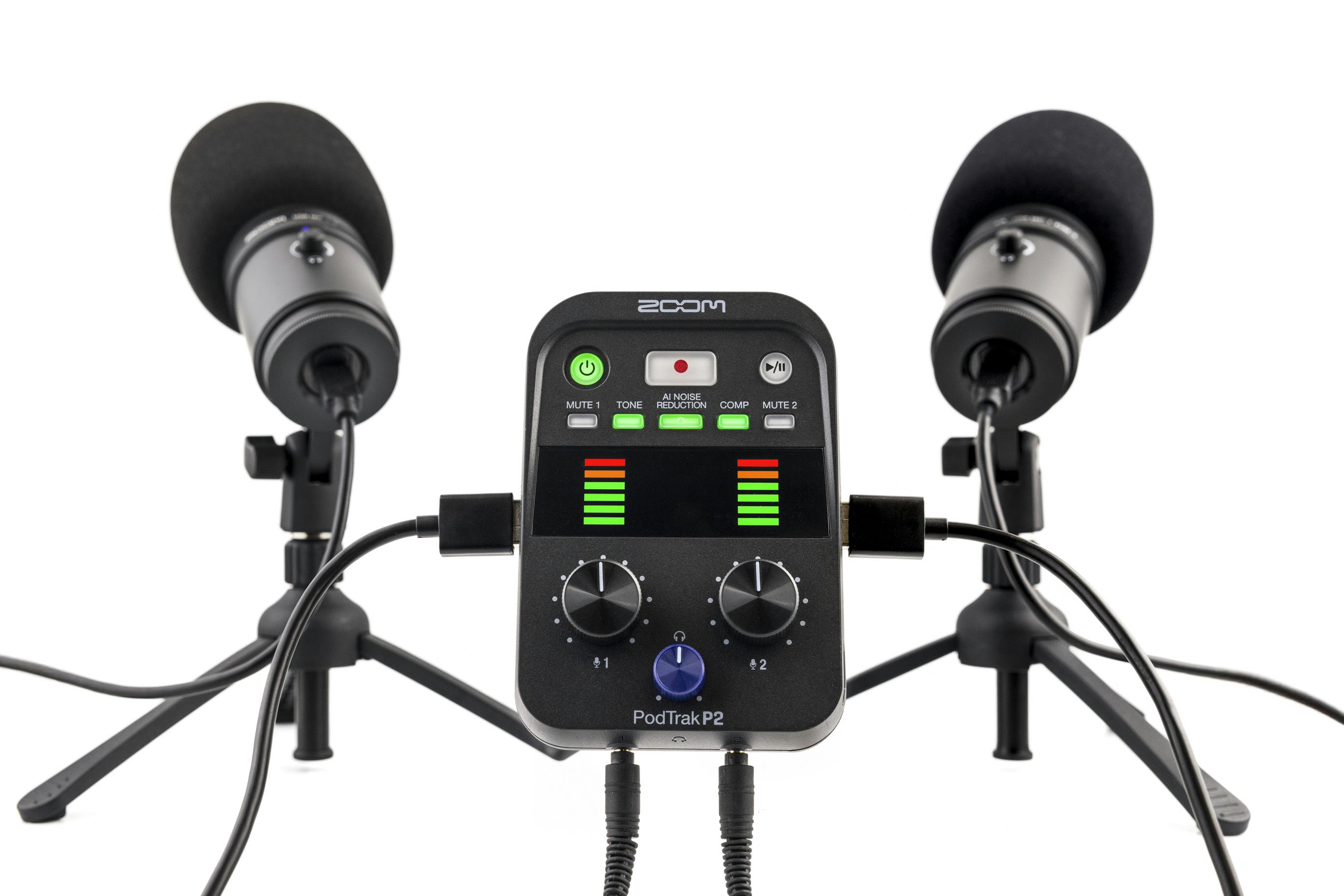 Bisher war es nicht oder nur schwer möglich, mit zwei USB-Mikrofonen einen Podcast aufzunehmen. Der ZOOM Podtrak P2 löst dieses Problem zu einem erstaunlichen Preis von um die 120 Euro. Zusammen mit zwei kompatiblen Zoom-Mikrofonen und Kopfhörern hat man ein gutes Einsteiger-Podcastset für unter 400 Euro zusammen.