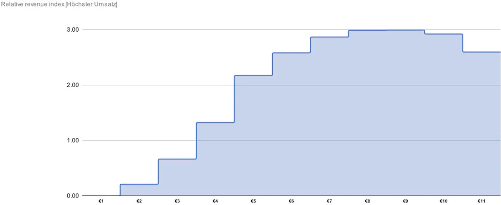 Um das rauszufinden, bietet sich eine Umfrage an, zum Beispiel nach dem Van Westendorp's Price Sensitivity Meter (Öffnet in neuem Fenster). Ohne zu tief einzusteigen: Man findet dadurch die Preisspanne heraus, die die Kund:innen akzeptieren. Also ein Preisbereich zwischen zu niedrig und zu hoch. Bei Krautreporter haben wir das vor der letzten Preiserhöhung gemacht, und gleichzeitig errechnet, bei welchen Preise in dieser Spanne der Gesamtumsatz am höchsten sein würde. Das kam heraus: