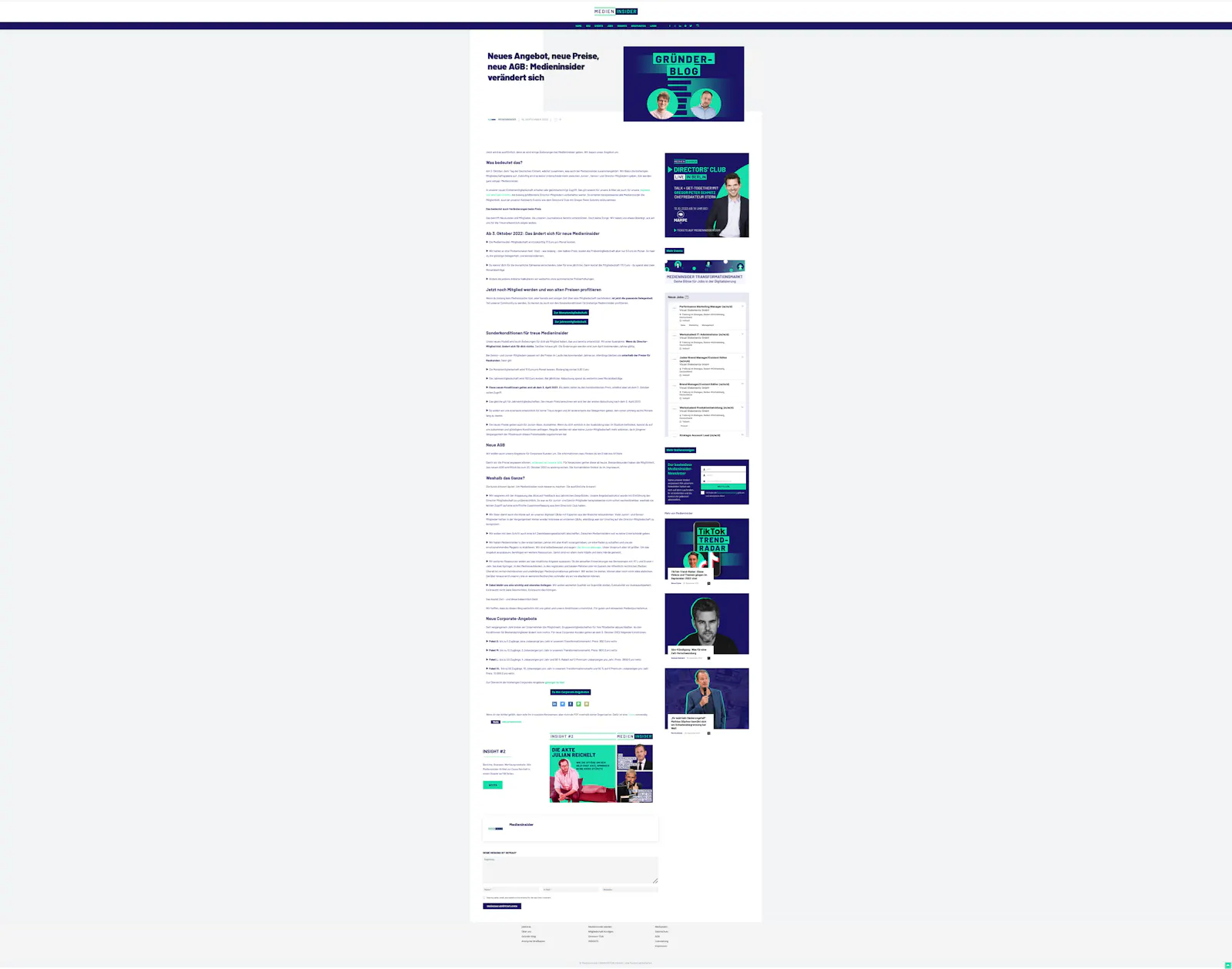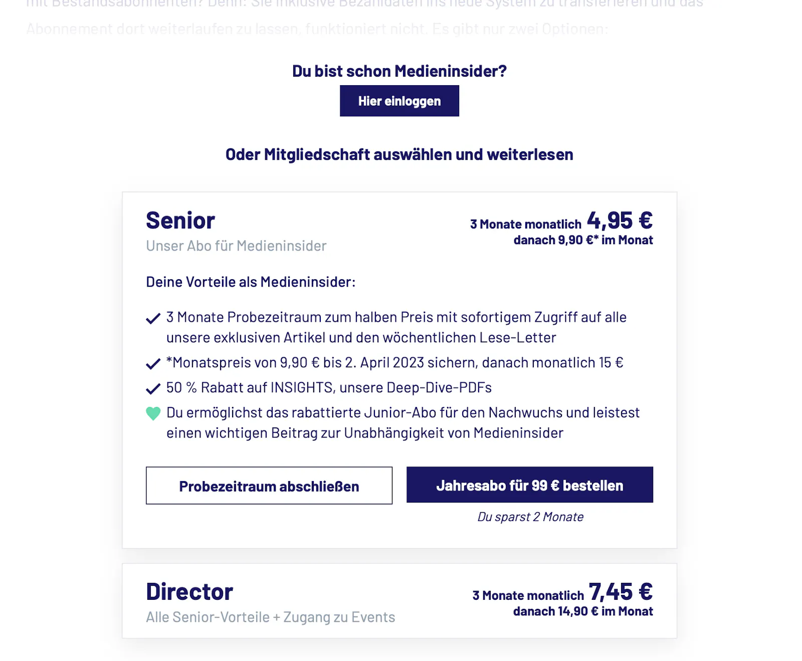 Und das hier ist der Artikel, mit dem Medieninsider die Preiserhöhung ankündigt (Öffnet in neuem Fenster)und begründet.