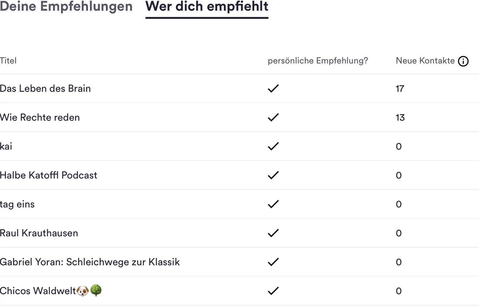 Es funktioniert so: Newsletter-Autor:innen können andere Newsletter weiterempfehlen. Meldet sich jemand bei meinem Newsletter an, werden ihm anschließend drei weitere angezeigt, die mit einem Klick mitabonniert werden können.