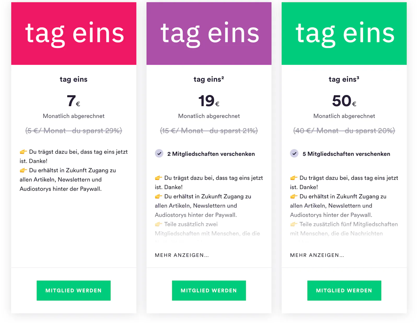 Ich selbst bin am ersten Tag Mitglied geworden, Tag-eins-Mitglied an Tag eins sozusagen. Ich weiß aus eigener Erfahrung, wie wichtig die ersten Unterstützer:innen sind, um so einer Kampagne die nötige Dynamik zu geben. Wenn ihr Leute in Österreich kennt, selbst Österreicher:innen seid oder die Welt einfach ein bisschen interessanter machen wollt, guckt euch gleich die Seite von tag eins an, werdet Mitglied (geht auch an Tag sieben) und erzählt davon weiter.