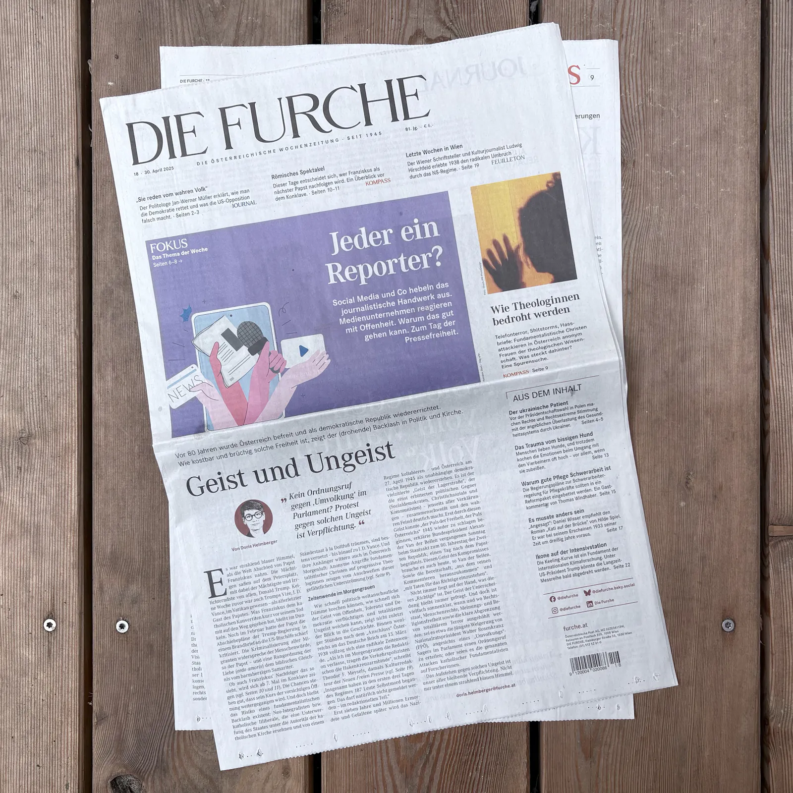 Dieser Text in vor ein paar Wochen in der wunderbaren österreichischen Wochenzeitung Die Furche erschienen. Hier findest du ihn online (Öffnet in neuem Fenster), verbunden mit der Möglichkeit eines Probeabos.