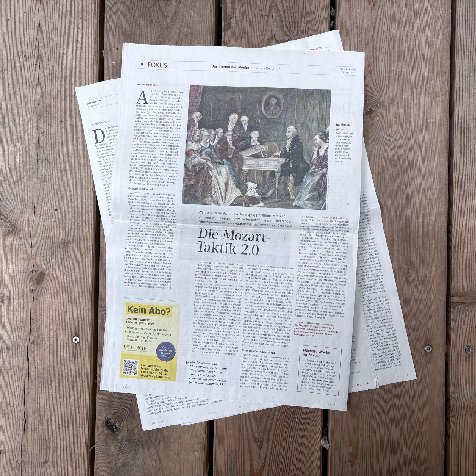 Heute geht es hier um einen klassischen Komponisten, und dazu passt auch diese Nachricht. Denn morgen wird es in Mozarts Heimat spannend: Dann startet die Kampagne des Projekts Jetzt.at (Öffnet in neuem Fenster). Das soll ein österreichisches Community-getragenes Hintergrundmedium werden, ähnlich wie De Correspondent, Krautreporter, Republik, Zetland etc. Ich drücke die Daumen!