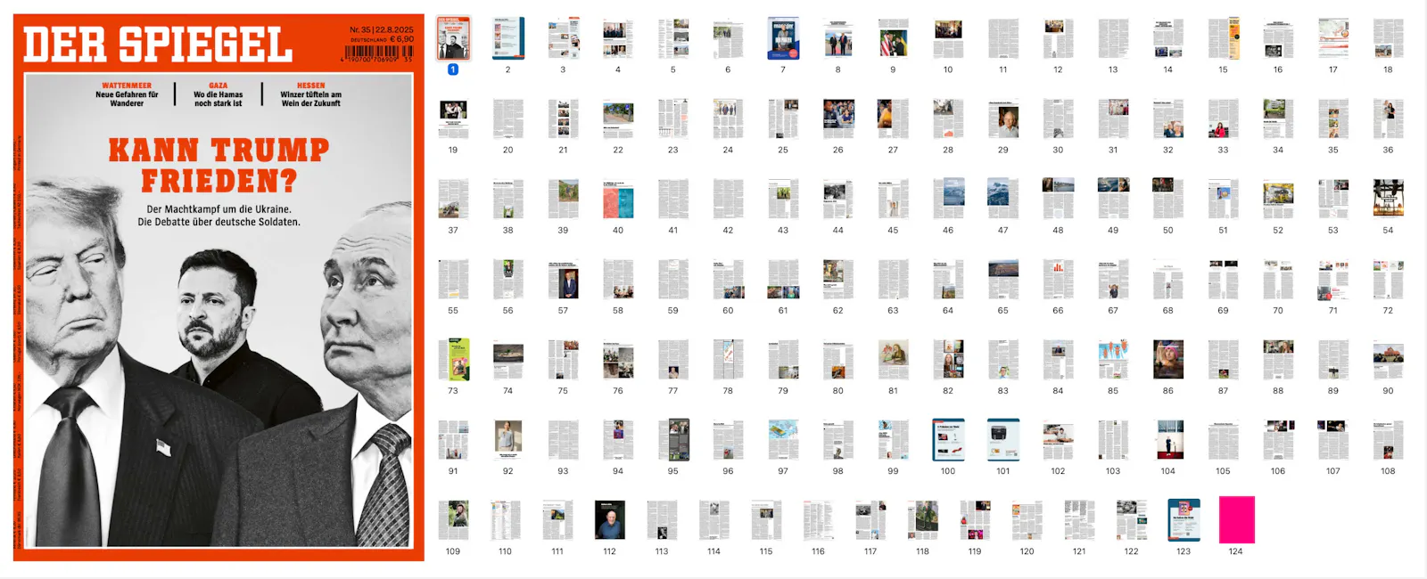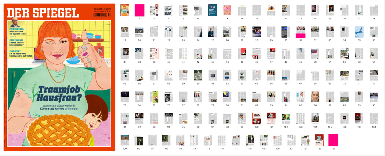Zeitschriften haben zwei Haupteinnahmequellen: Anzeigenumsätze (Werbung verkaufen) und Vertriebserlöse (Abos, Kioskverkauf). Anzeigen machten dabei lang den größeren Anteil aus, etwa zwei Drittel des Geldes kam aus dem Verkauf von Seiten an Werbekunden, ein Drittel aus dem Verkauf der Hefte an Leser:innen. Mit dem Aufkommen des Internets verschob sich dieses Verhältnis nach und nach. Im Jahr 2024 kamen beim Spiegel nach eigenen Angaben (Öffnet in neuem Fenster) 75 Prozent des Umsatzes aus dem Vertrieb, 25 Prozent aus Anzeigen. Doch die Anzeigen fehlen in diesem Jahr in einzelnen Ausgaben fast komplett.
