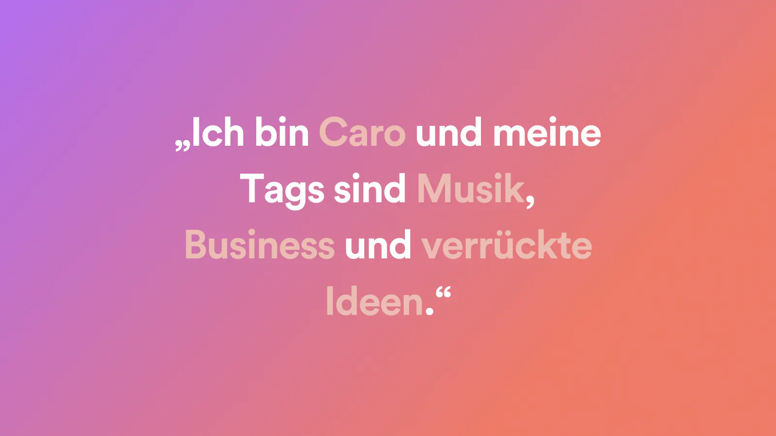 Um 10 Uhr, zum Beginn der Konferenz, kommen also alle zusammen. Zunächst einmal geht es darum, dass sich alle kennenlernen. Selbst wenn bis zu hundert Leute an so einem Tag teilnehmen, ist es meiner Meinung nach wichtig, dass sich alle einmal ganz kurz vorstellen. Caros waren zum Beispiel: „Ich bin Caro und meine Tags sind Musik, Business und verrückte Ideen.“ So hat jeder schon mal etwas gesagt, es gibt vielleicht sogar schon die ersten Anknüpfungspunkte, man kann sich ein paar Gesichter merken, und der Damm ist gebrochen.