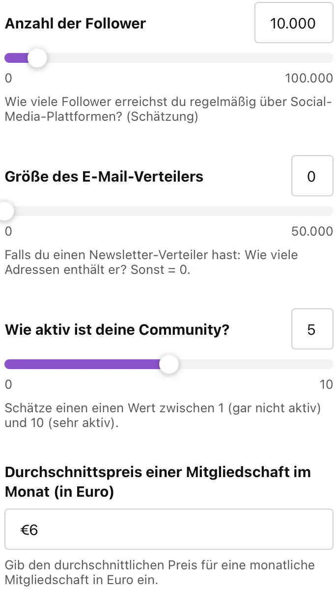 Ich hab einen Membership-Rechner gebastelt! Wenn du rausfinden willst, wie viel du mit einem Mitgliedschafts-Angebot verdienen könntest, spiel ihn doch mal durch (Öffnet in neuem Fenster).