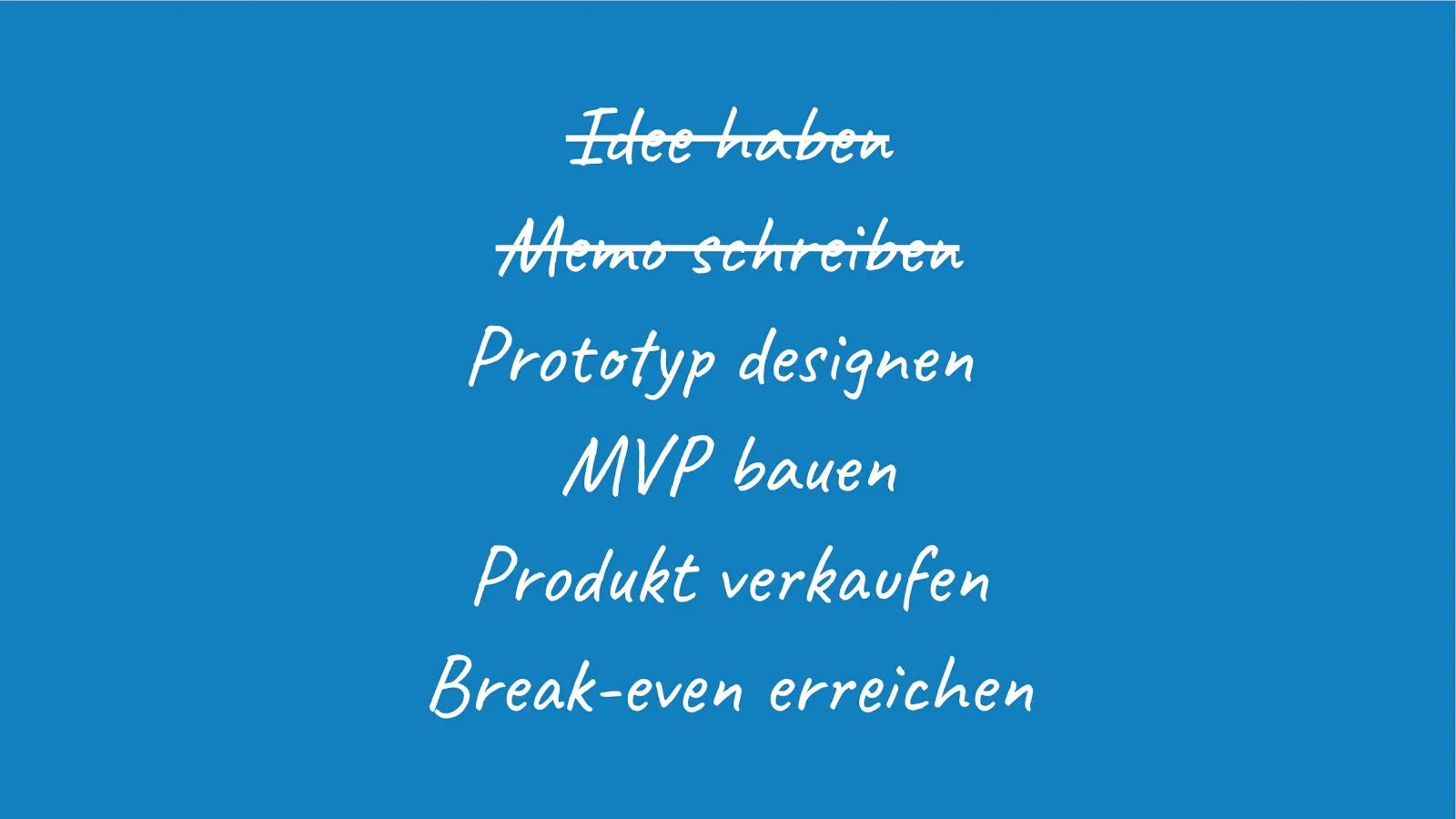 Wir setzen mal voraus, dass du nach Memo und Feedback immer noch überzeugt bist von deiner Lösung. Wahrscheinlich ist sie aber abstrakt; oder du wirst merkst, dass es sofort komplex wird, sobald du dir das ganze als wirkliche App oder Webseite auf deinem Computer oder Handy vorstellst. Darum ist es jetzt zu früh, schon mit einer Software-Agentur zu sprechen oder eine:n Entwickler:in hinzuzuziehen. Erstmal brauchst du einen überzeugenden Prototyp.