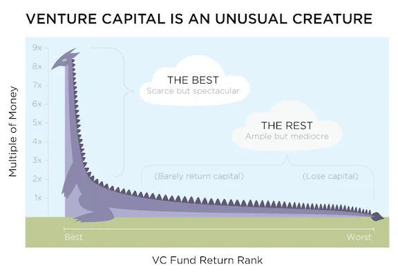 Der VC-Dino: Die wenigen wirklich erfolgreichen Investments müssen so spektakulär erfolgreich sein, dass sie viele Verluste kompensieren. (Quelle (Öffnet in neuem Fenster))