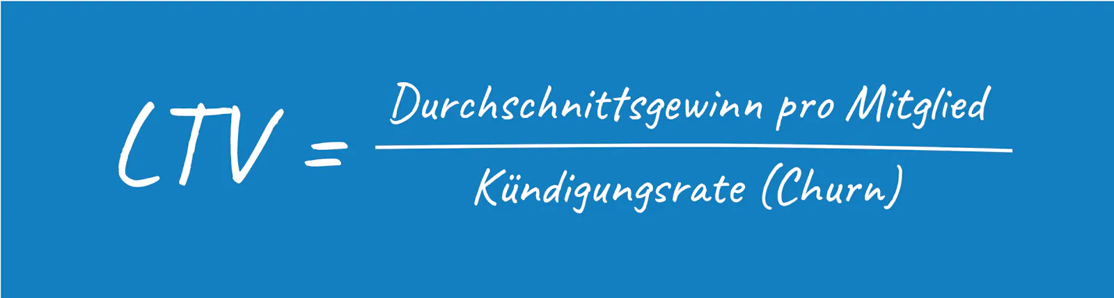 Zweitens kannst du aber auch Ausgaben für Marketing planen. Solange es dich nicht mehr als 100 Euro kostet, ein durchschnittliches Mitglied zu gewinnen, zahlst du nicht drauf. Diese Akquisitionskosten (CAC, customer acquisition costs) sollten auf Dauer nur etwa ein Viertel des LTV ausmachen.
