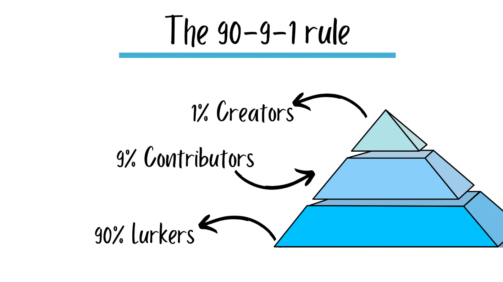 Andererseits ist eine kühle Community für die meisten Leute genau das, was sie suchen. Sie wollen sich als Teil von etwas fühlen, ohne ständig durch Interaktion behelligt zu werden. Eines der bekanntesten Naturgesetze von Netz-Communitys ist die 90-9-1-Regel (Öffnet in neuem Fenster), wie sie der dänische Tech-Autor Jakob Nielsen formuliert hat: „Die meisten Benutzer beteiligen sich nicht sehr viel. Meistens lauern sie nur im Hintergrund herum. Demgegenüber stammt eine unverhältnismäßig große Menge an Inhalt und anderer Aktivität von einer winzig kleinen Minderheit aller Benutzer.“
