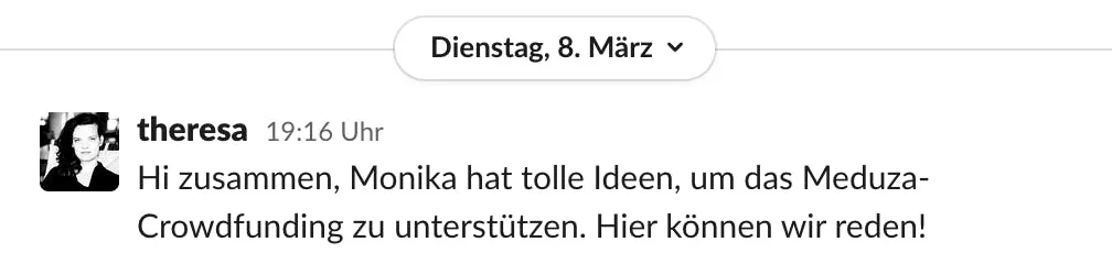 Am Vormittag meldet sich Rico Grimm (Krautreporter (Öffnet in neuem Fenster)-Mitgründer) bei Leon Fryszer (Geschäftsführer) und mir (Herausgeber). Unser ehemaliger Autor Moritz Gathmann, inzwischen bei Cicero und in der Ukraine unterwegs, hatte Rico auf die verzweifelte Lage der unabhängigen Journalist:innen in Russland hingewiesen, speziell von Meduza (Öffnet in neuem Fenster). Das größte noch funktionierende unabhängige russische Medium sende Notrufe wegen seiner finanziellen Lage. „Ich glaube, schnelle Hilfe wäre jetzt gut“, schreibt Moritz.