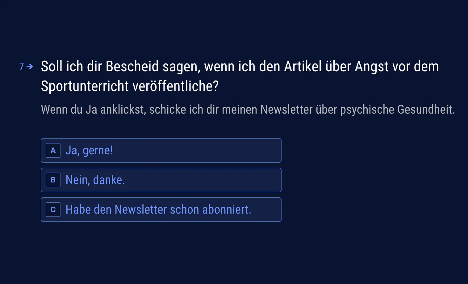 3. E-Mailadressen. Der wichtigste Grund, warum sich Umfragen auch wirtschaftlich lohnen, liegt aber woanders: Sie bringen neue E-Mailadressen. Absurd viele. Allein durch die Sportunterricht-Umfrage haben 3.153 neue Menschen den Newsletter unseres Reporter Martin Gommel abonniert. Grundlage ist eine simple Wahrheit: Wer bei einer Umfrage mitmacht, will auch wissen, was mit den Ergebnissen passiert. Also fragen wir in jeder Umfrage, ob wir dir Bescheid sagen sollen, wenn der dazugehörige Artikel erscheint. Wer Ja anklickt, abonniert einen unserer Newsletter (wichtig: da muss man transparent sein).